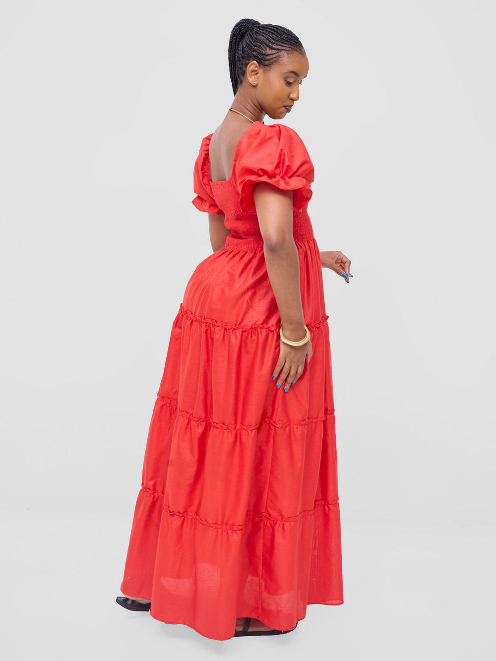 Safari Kikoy Shirred Top Maxi Dress - Red